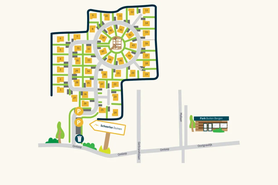 Breadcrumb Startseite Lageplan Lageplan Der Lageplan macht es leicht, sich im Park zurechtzufinden. Alle Unterkünfte sind deutlich gekennzeichnet, so dass Sie Ihr Feriendomizil leicht finden können. Klicken Sie auf den untenstehenden Link, um die Karte in voller Größe zu sehen.Sehen Sie sich hier die Karte in voller Größe an Entdecken Sie den Ferienpark und die Umgebung Parkinformationen In der folgenden Übersicht stehen alle Informationen, die für die optimale Gestaltung deines Urlaubs notwendig sind. Weiterlesen Umgebung Die Umgebung des Ferienparks Schoorlse Duinen verbindet reizvolle Dörfer mit atemberaubender Natur. Weiterlesen Ferienhäuser ansehen